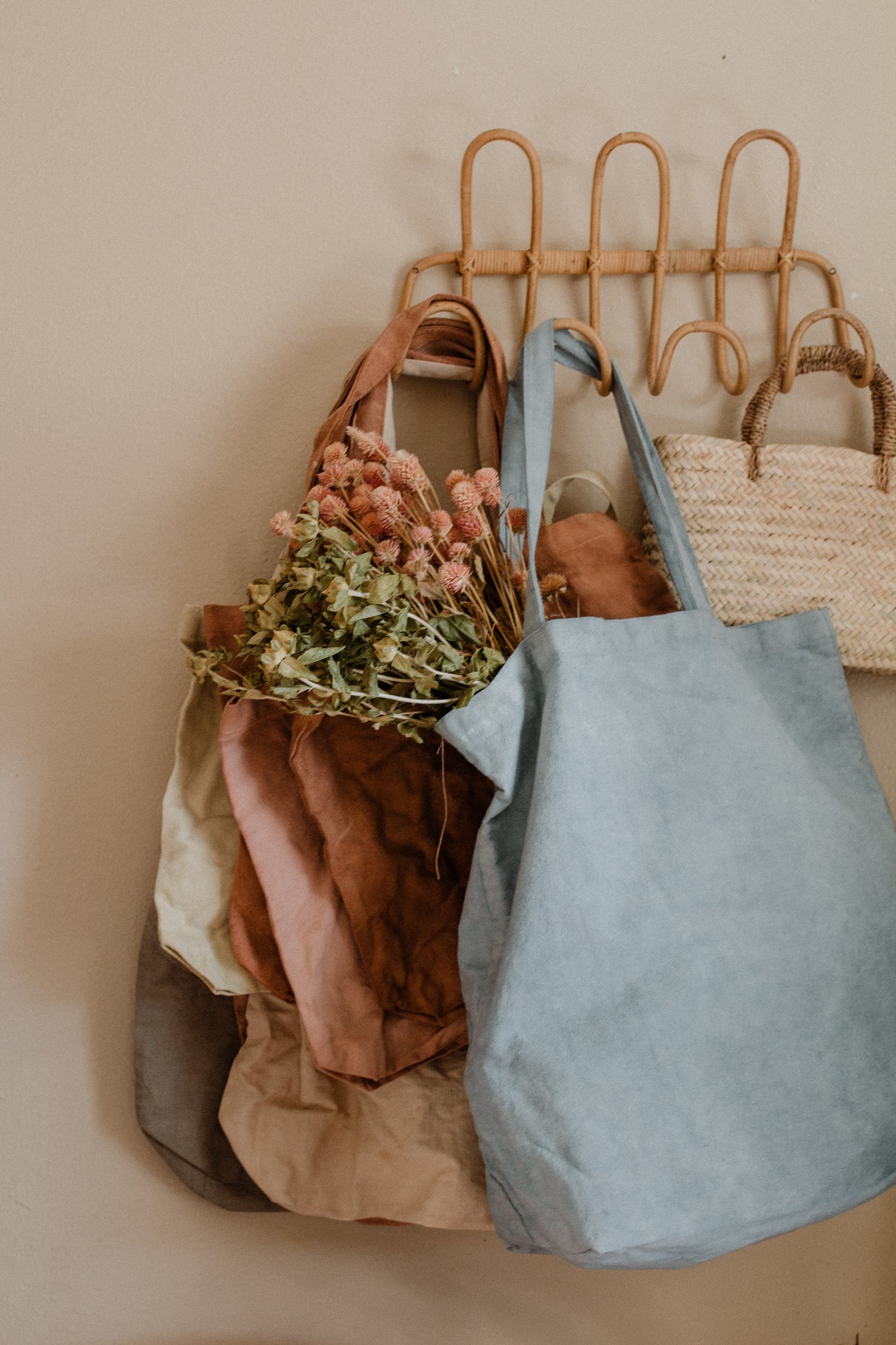 Say goodbye to those plastic bags! You can't get cuter with this eco friendly and naturally dyed canvas tote bag.