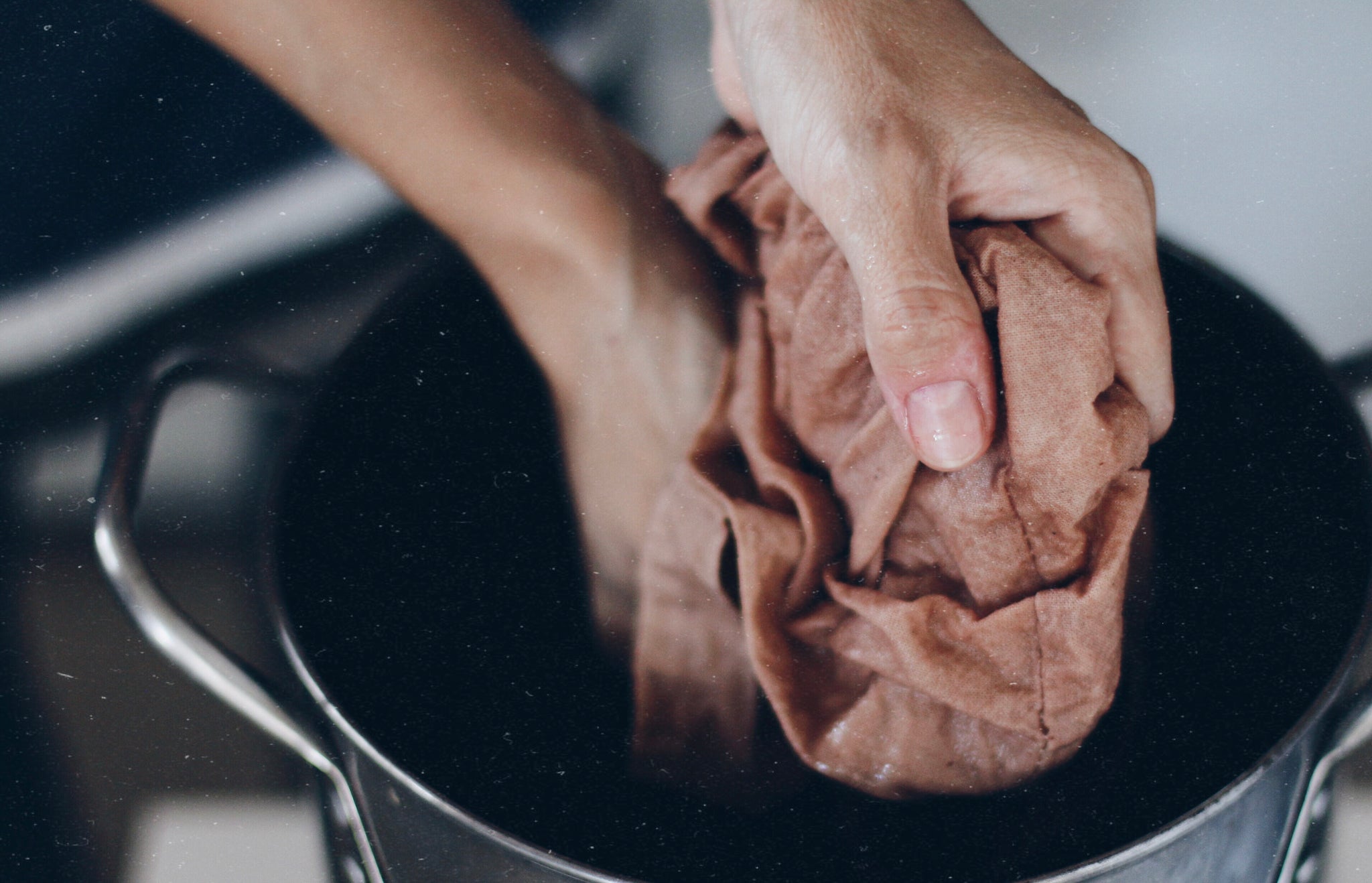 It was dyed by hand with natural extracts at my studio in New Mexico in 3 different colors: olive, muted pink and light blue (indigo).