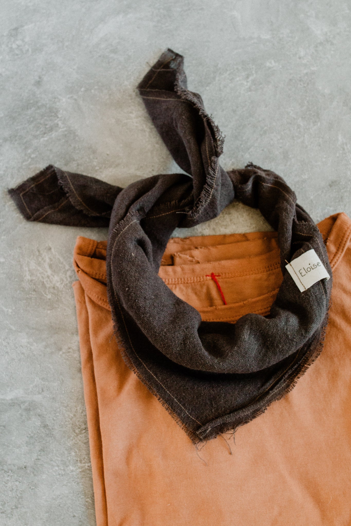 The simpler, the better... Add a minimal and natural detail to your wardrobe with this raw silk and naturally dyed bandana! Soft and lightweight, this fabric is simple and natural luxury...