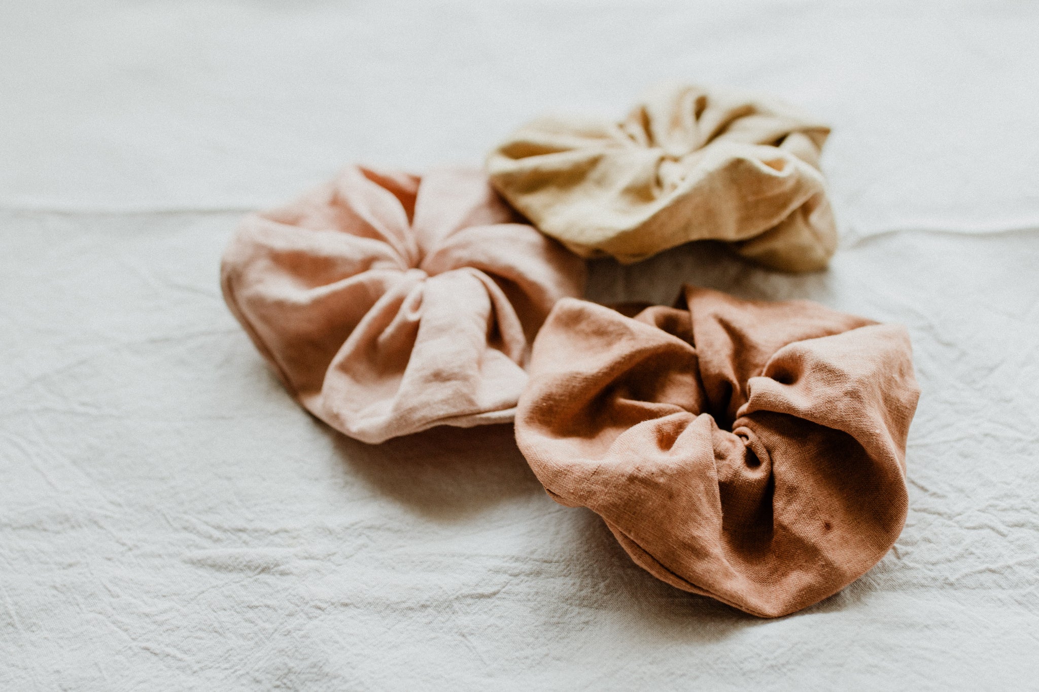 Scrunchies are the trendiest item right now and these XL size and plant dyed linen ones are gorgeous. Wear them in your hair or around your wrist!